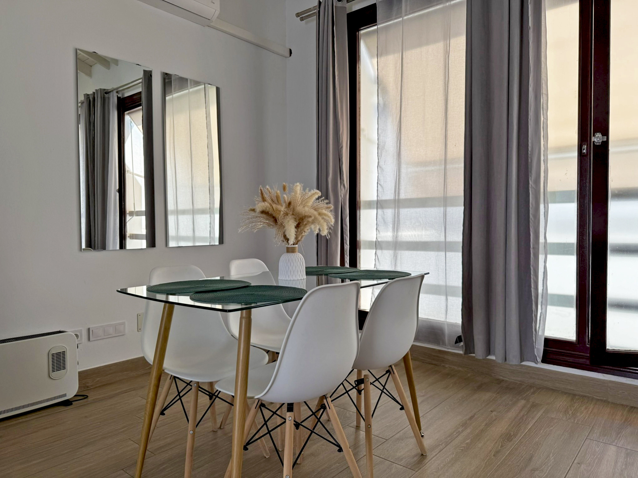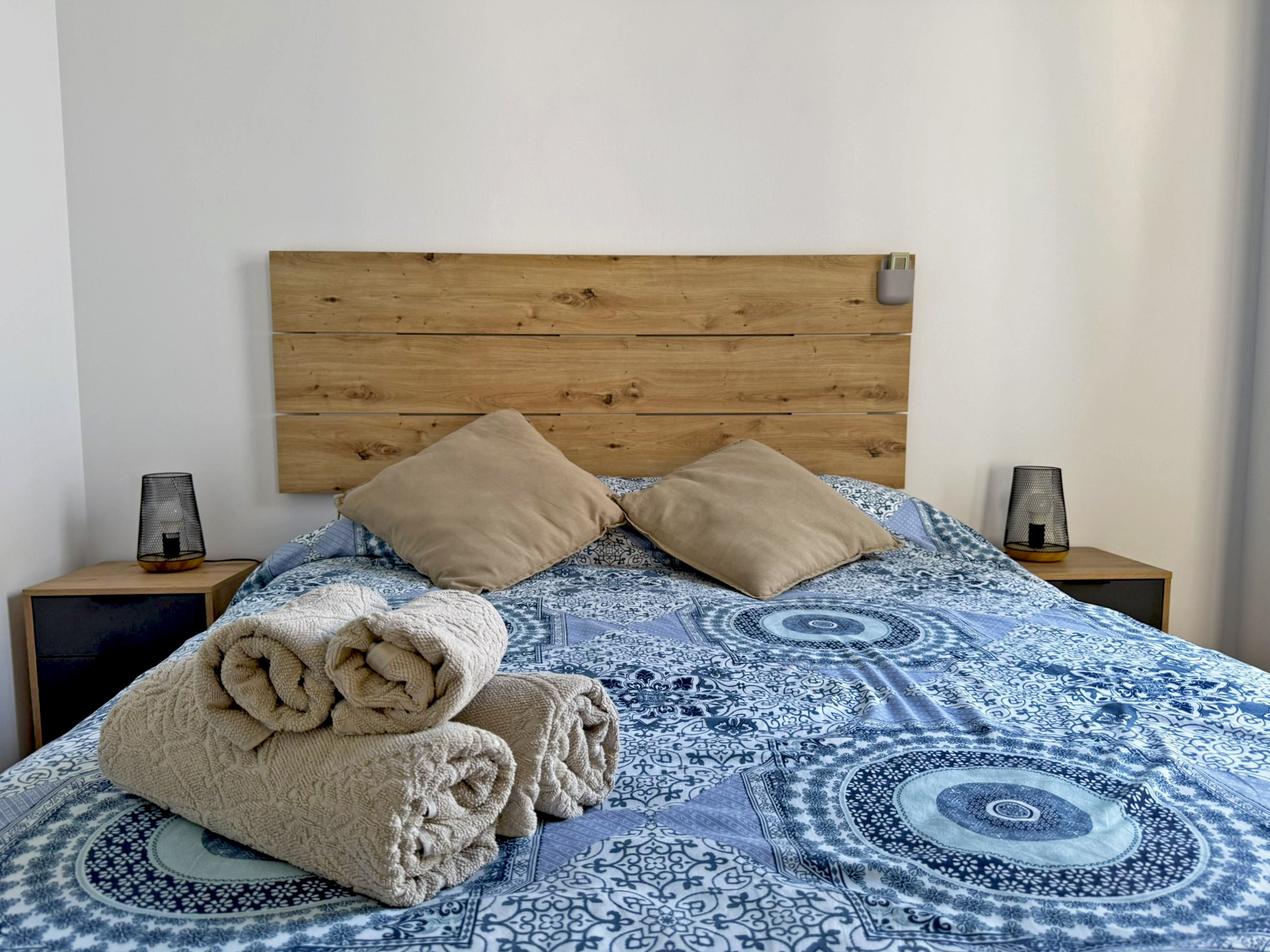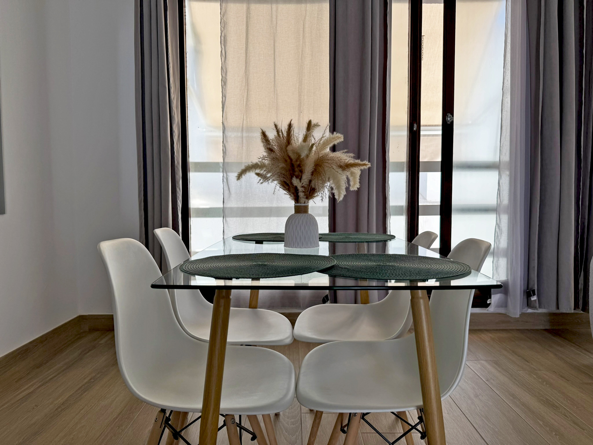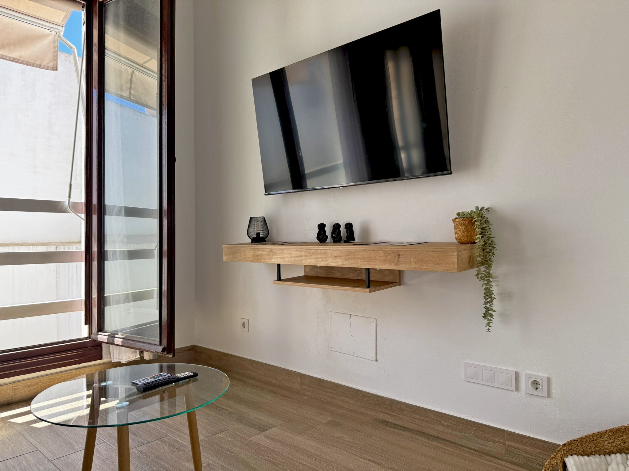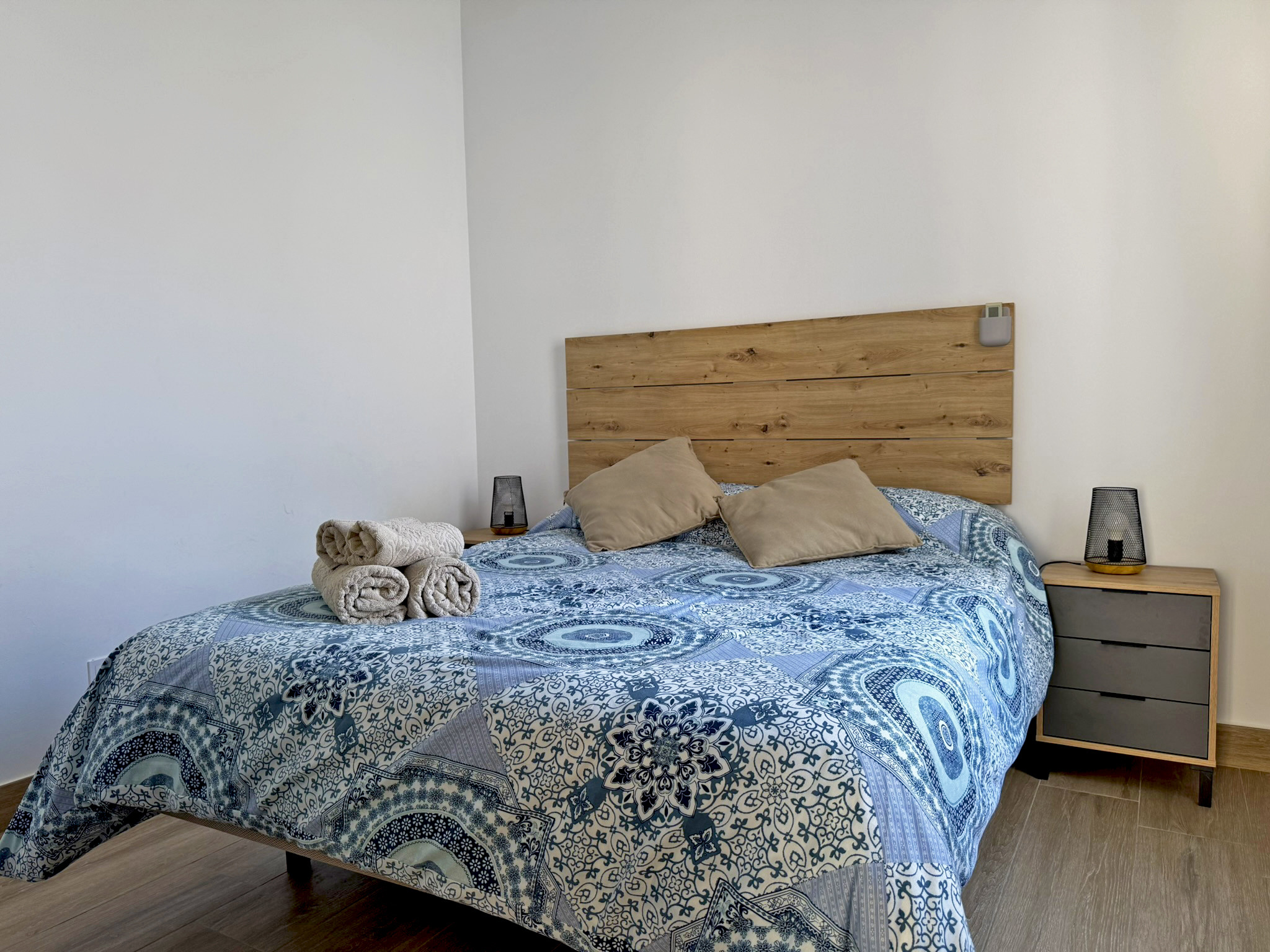El apartamento dispone de dos camas de matrimonio: una ubicada en un dormitorio independiente que garantiza descanso y privacidad, y otra en un cómodo sofá cama situado en el amplio salón comedor con cocina integrada. Este espacio principal destaca por su gran luminosidad, gracias a sus amplios ventanales que llenan la estancia de luz natural todo el día, aportando un ambiente agradable y acogedor. La vivienda esta equipada con aire acondicionado y Wi-Fi, asegurando una estancia confortable en cualquier época del año. Su distribución abierta y funcional permite disfrutar de cada rincón con comodidad.