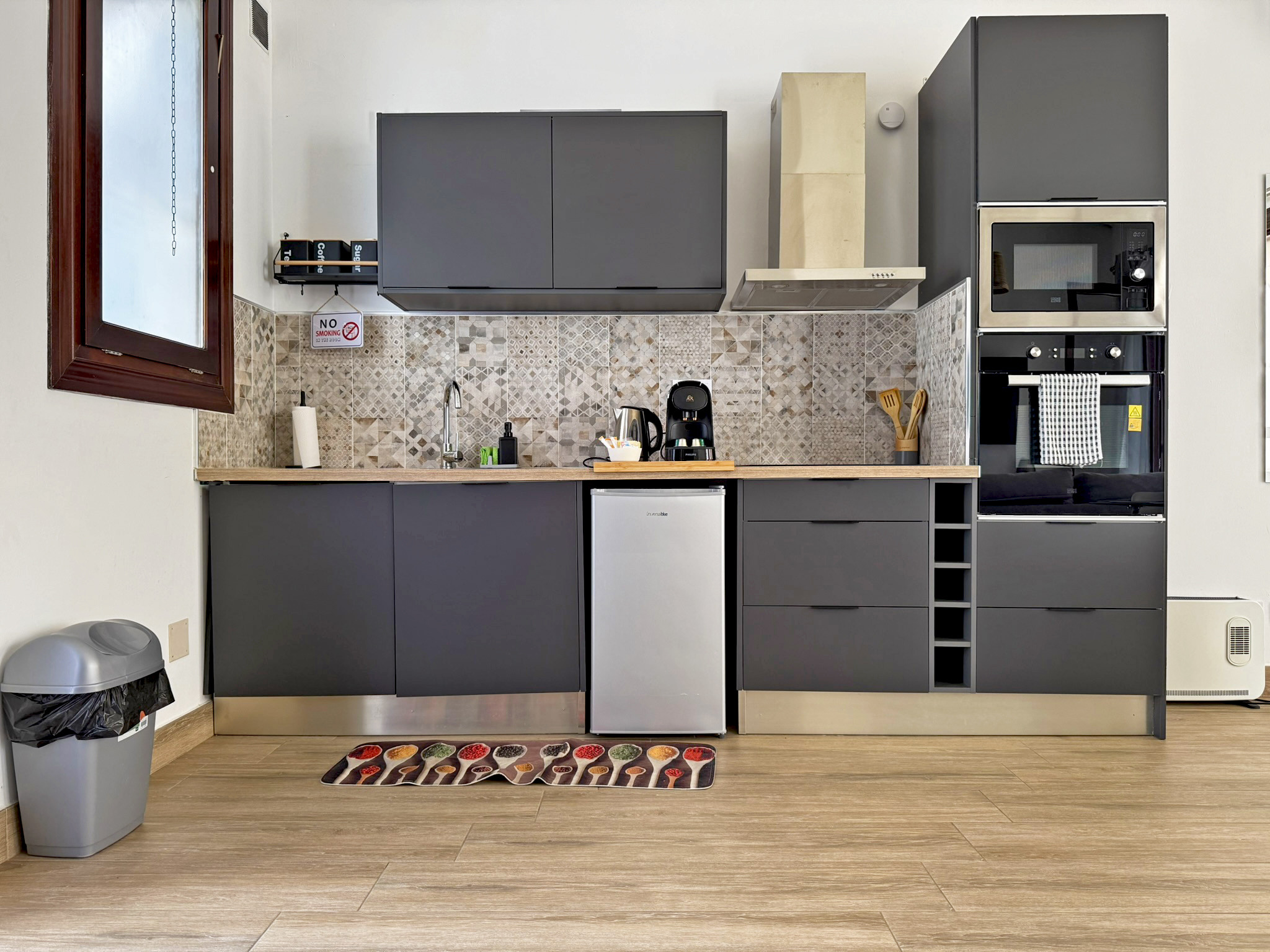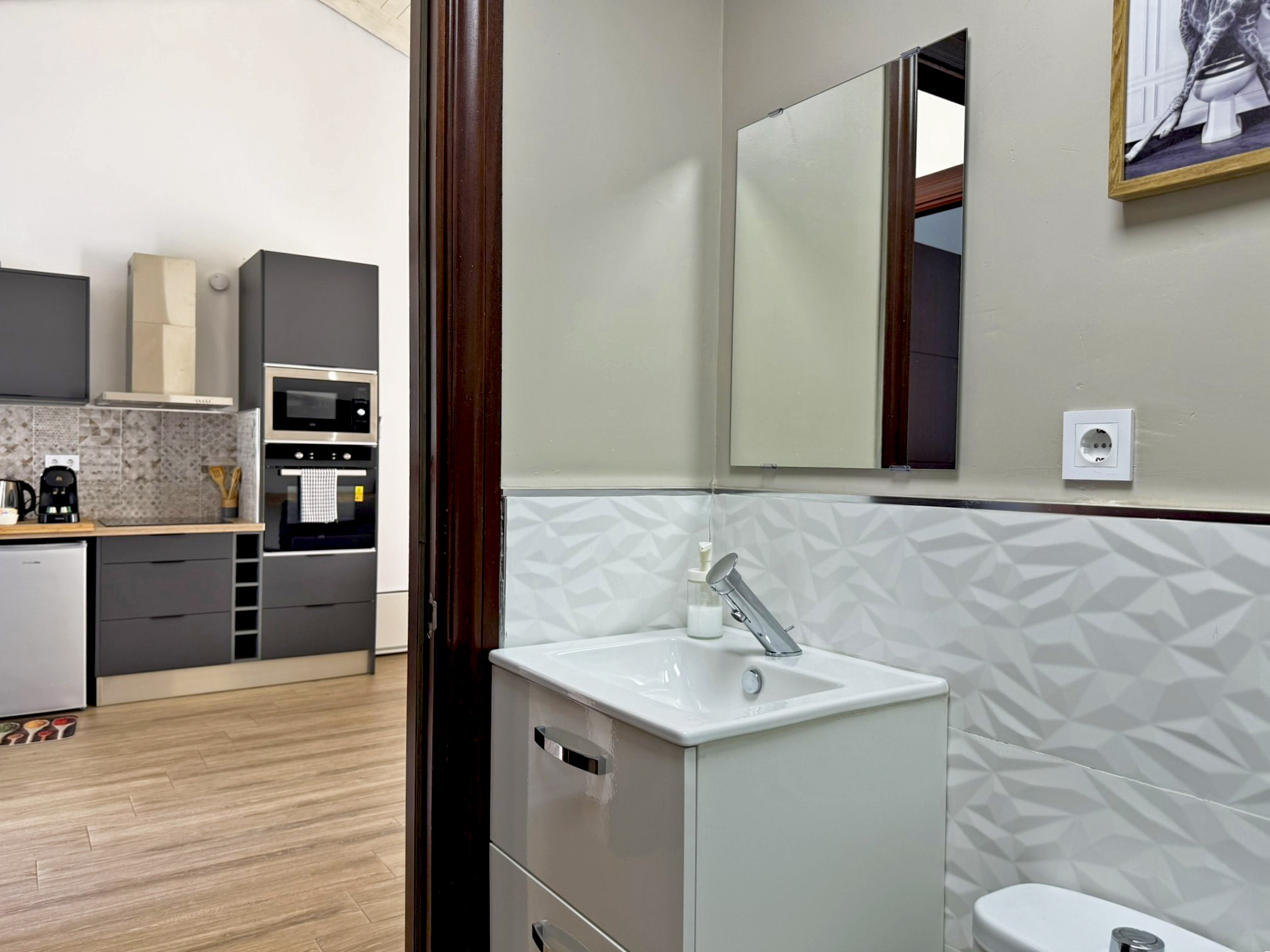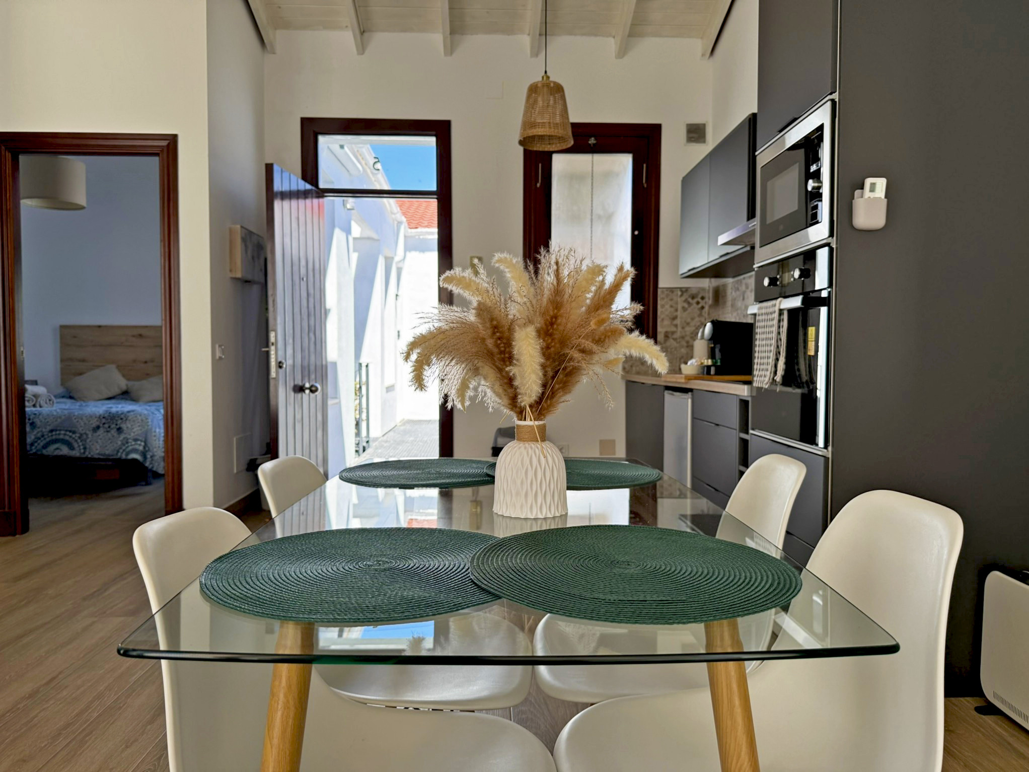 Este encantador apartamento de una habitación, ubicado en el corazón de Jerez, es el refugio perfecto para una escapada romántica. La cálida habitación, con su cómoda cama de matrimonio, invita al descanso y a momentos de relajación juntos, mientras que el salón, con sofá cama doble, ofrece un espacio adicional para hacer que tu estancia sea aún más cómoda o más flexibidad para grupos pequeños. La decoración, cuidadosamente pensada, crea un ambiente de confort, ideal para disfrutar en pareja de cada rincón de este hogar.
