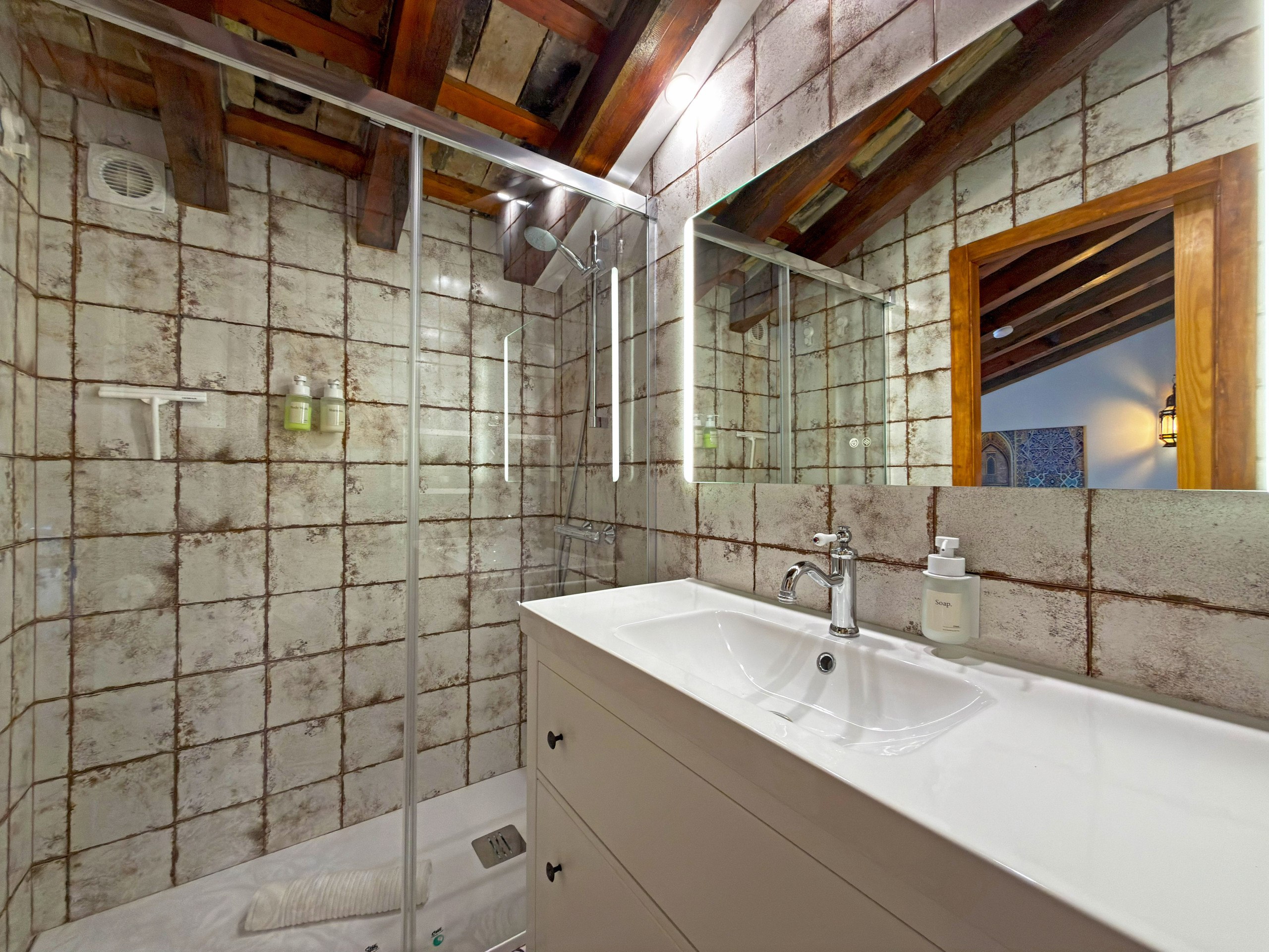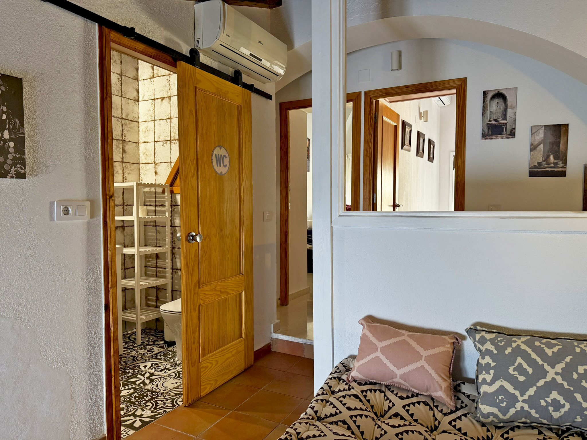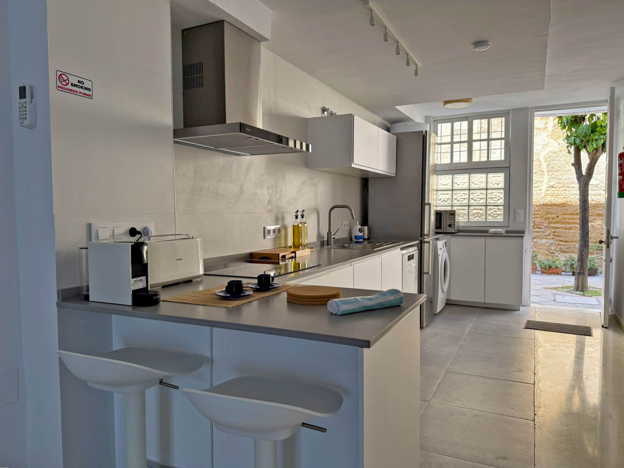 The upper floor offers a charming mini-lounge with an intimate and cosy atmosphere, perfect for disconnecting or enjoying a moment of tranquillity. On this floor, there are also two bedrooms with double beds and a second bathroom with a shower, ensuring comfort for all guests. The apartment has air conditioning in the living room and both bedrooms. Additionally, it includes a garage space in the same building, a true added value in the historic centre of Jerez, where parking can be complicated. It is the ideal accommodation for those seeking an authentic experience in the heart of Jerez, being able to discover on foot its wineries, gastronomy, culture and unique atmosphere. Out of respect for the neighbours and the residential nature of the building, parties and events are not allowed in the accommodation.