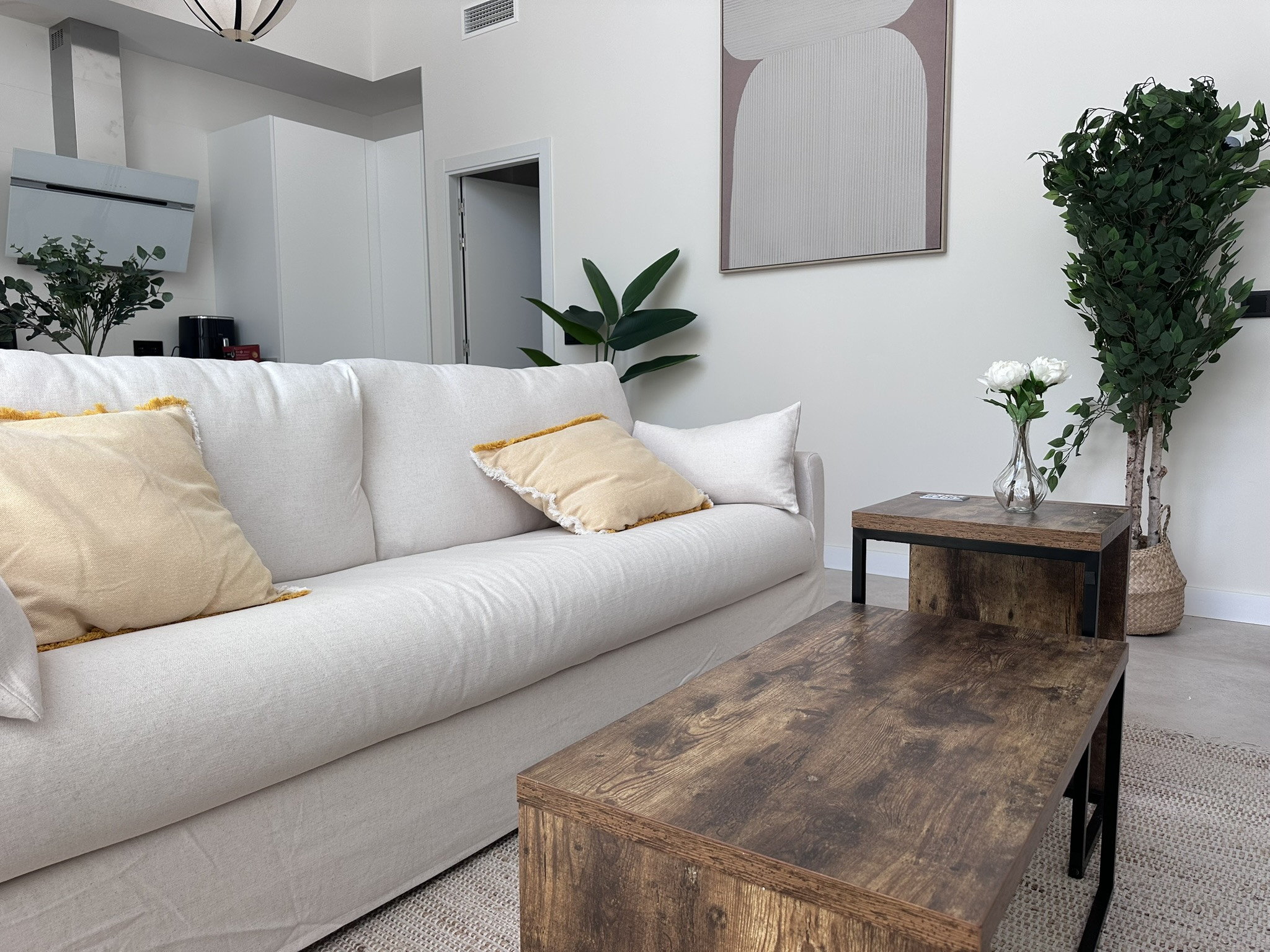 This charming one-bedroom apartment, located in the heart of Jerez, is the perfect refuge for a romantic getaway. The warm bedroom, with its comfortable double bed, invites rest and moments of relaxation together, while the living room, with a double sofa bed, offers additional space to make your stay even more comfortable or more flexible for small groups. The carefully thought-out decoration creates an atmosphere of comfort, ideal for enjoying every corner of this home as a couple.